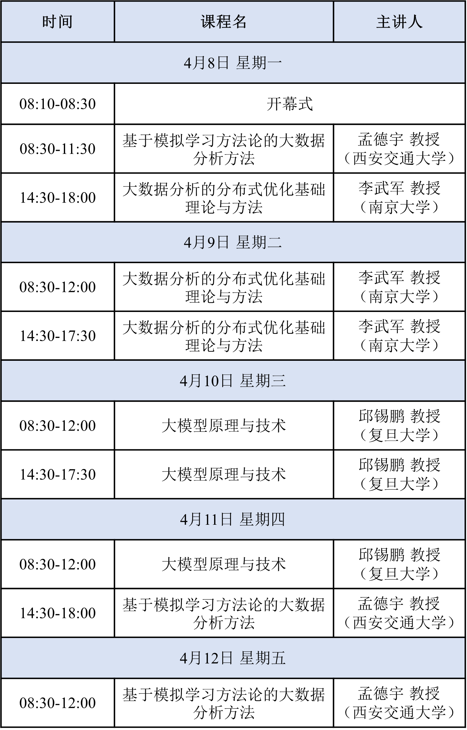 时间:2024年4月7日报到,4月8日-12日上课