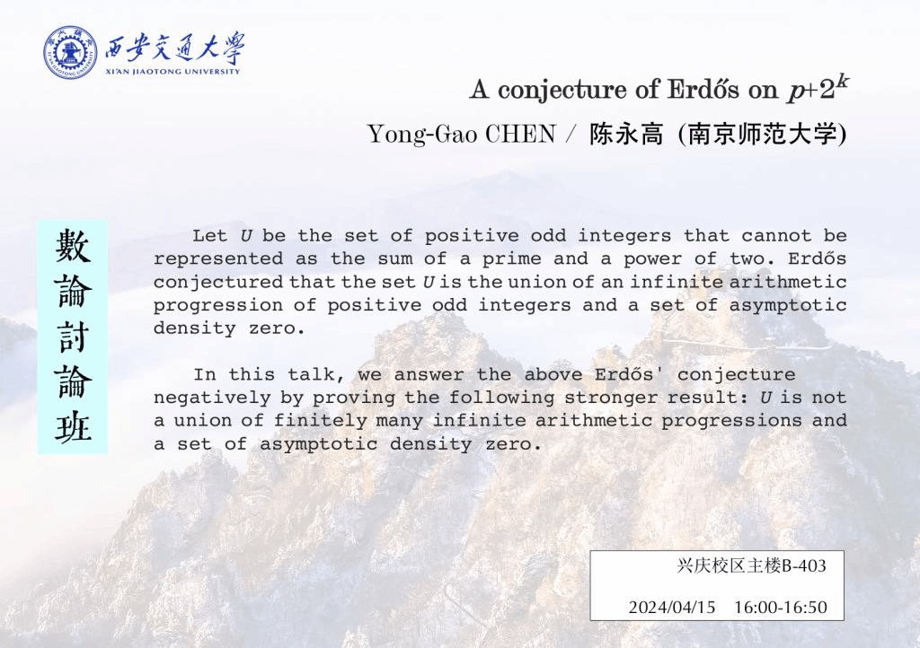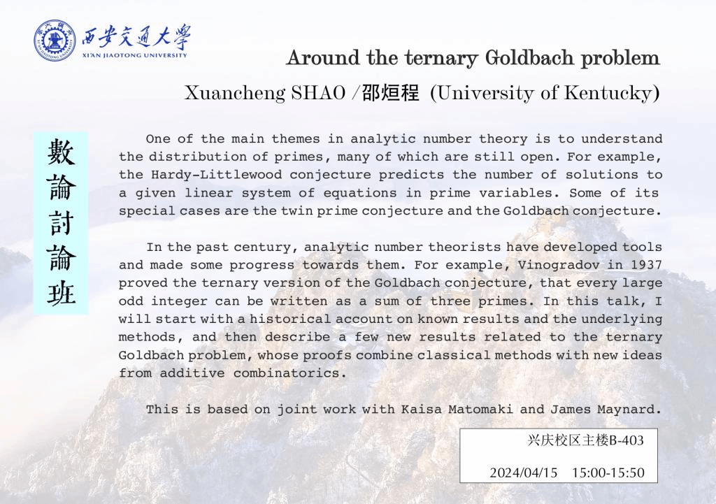 【数论讨论班】 肯塔基大学邵烜程、南京师范大学陈永高 (2024.04.15)