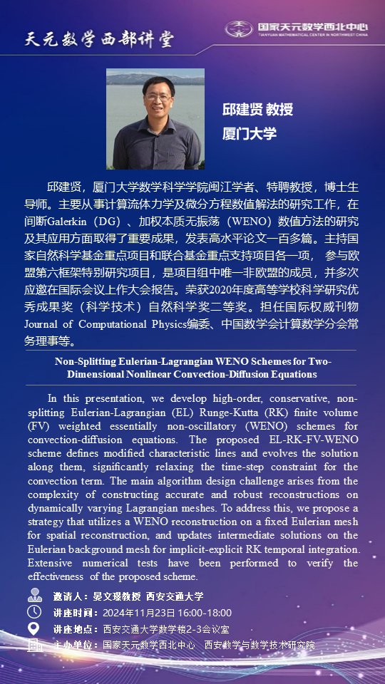 【天元数学西部讲堂】厦门大学邱建贤教授学术报告