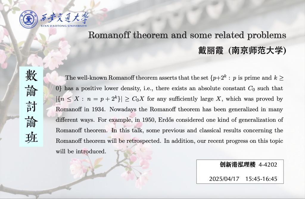 报告题目:Romanoff theorem and some related problems