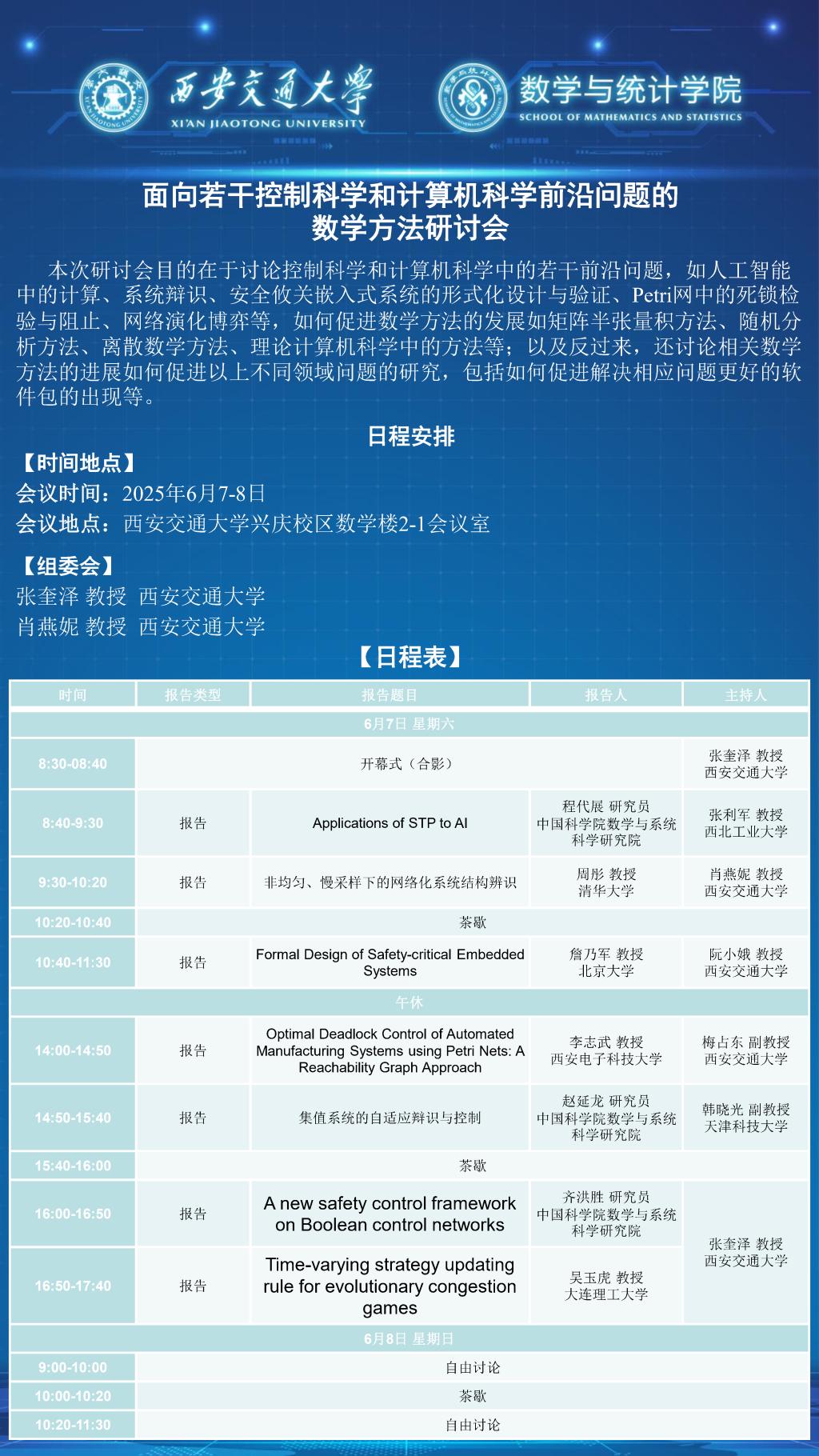 面向若干控制科学和计算机科学前沿问题的数学方法研讨会