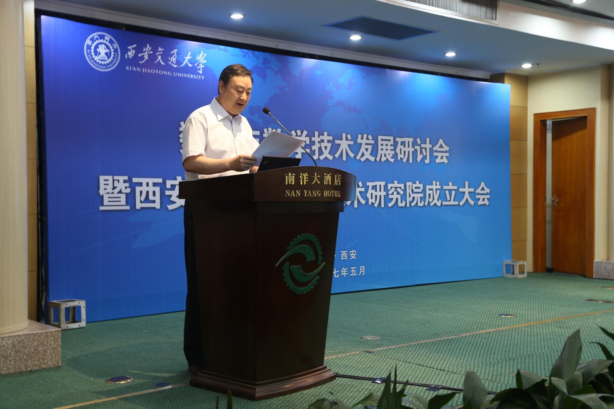 王铁军副校长代表学校宣读了成立“西安数学与数学技术研究院”的决定,以及国家发改委批准建设“大数据算法与分析技术国家工程实验室”的决定。