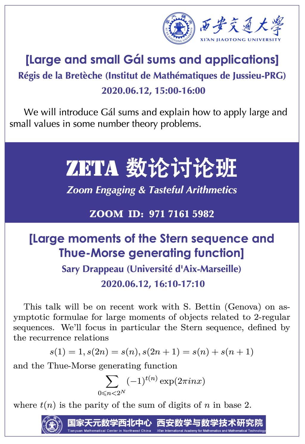 【ZETA数论讨论班】Régis de la Bretèche、Sary Drappeau (2020.06.12)