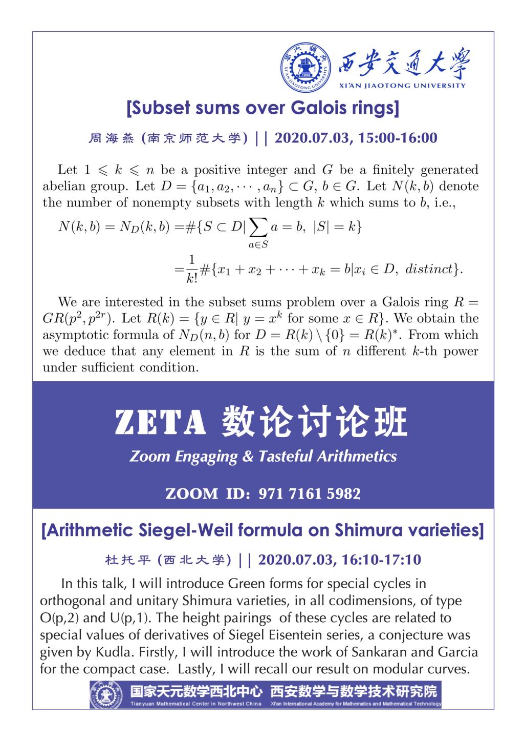 【ZETA数论讨论班】周海燕、杜托平 (2020.07.03)