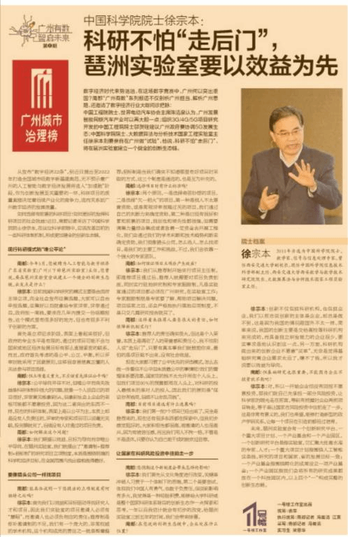 【南方都市报整版】徐宗本:科研不怕“走后门”,琶洲实验室要以效益为先