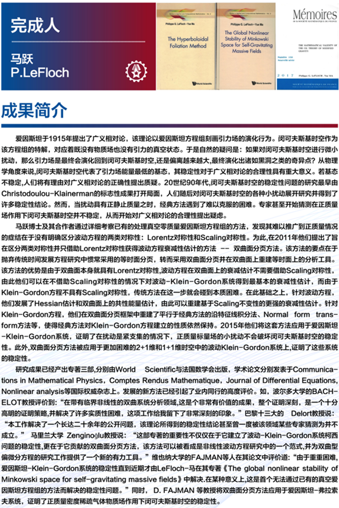 十大数学理论成果(三)双曲面分页方法与闵可夫斯基时空在正质量标量场作用下的稳定性
