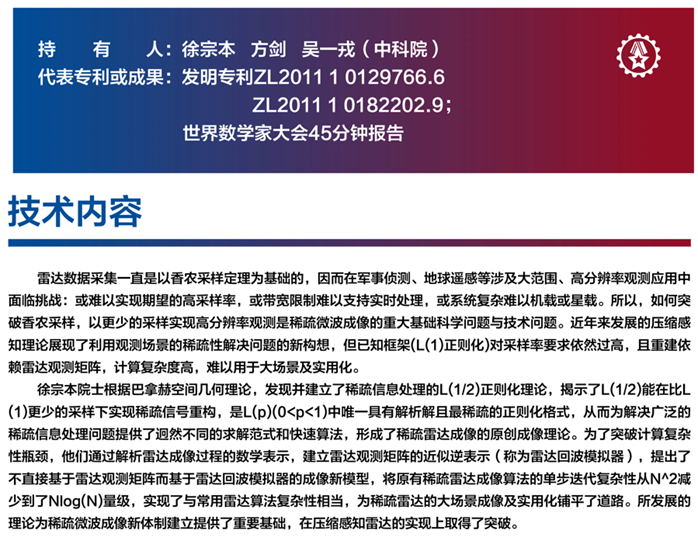 十大数学技术成果(一)基于L(1/2)正则化理论的稀疏雷达成像技术