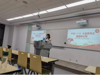王炳超分享了学习党的二十大精神的体会,他说,作为新时代青年,我们应当加强理论自信,夯实思想之基,铸牢理想之魂,与此同时发展自身优势,积极拼搏锐意进取,在新的发展背景之下,勇敢担当起不断谱写马克思主义中国化时代化新篇章的庄严历史责任,尽己所能谱写属于研究生的青春华章。