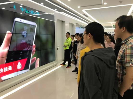 在华为西安研究所,同学们得到了企业方面的热情接待。工作人员向同学们介绍了企业的发展、销售业绩、获得的荣誉以及研发体系,以及西安研究所的发展历程,并邀请在场的同学实际感受华为内部通讯的先进与时效性。