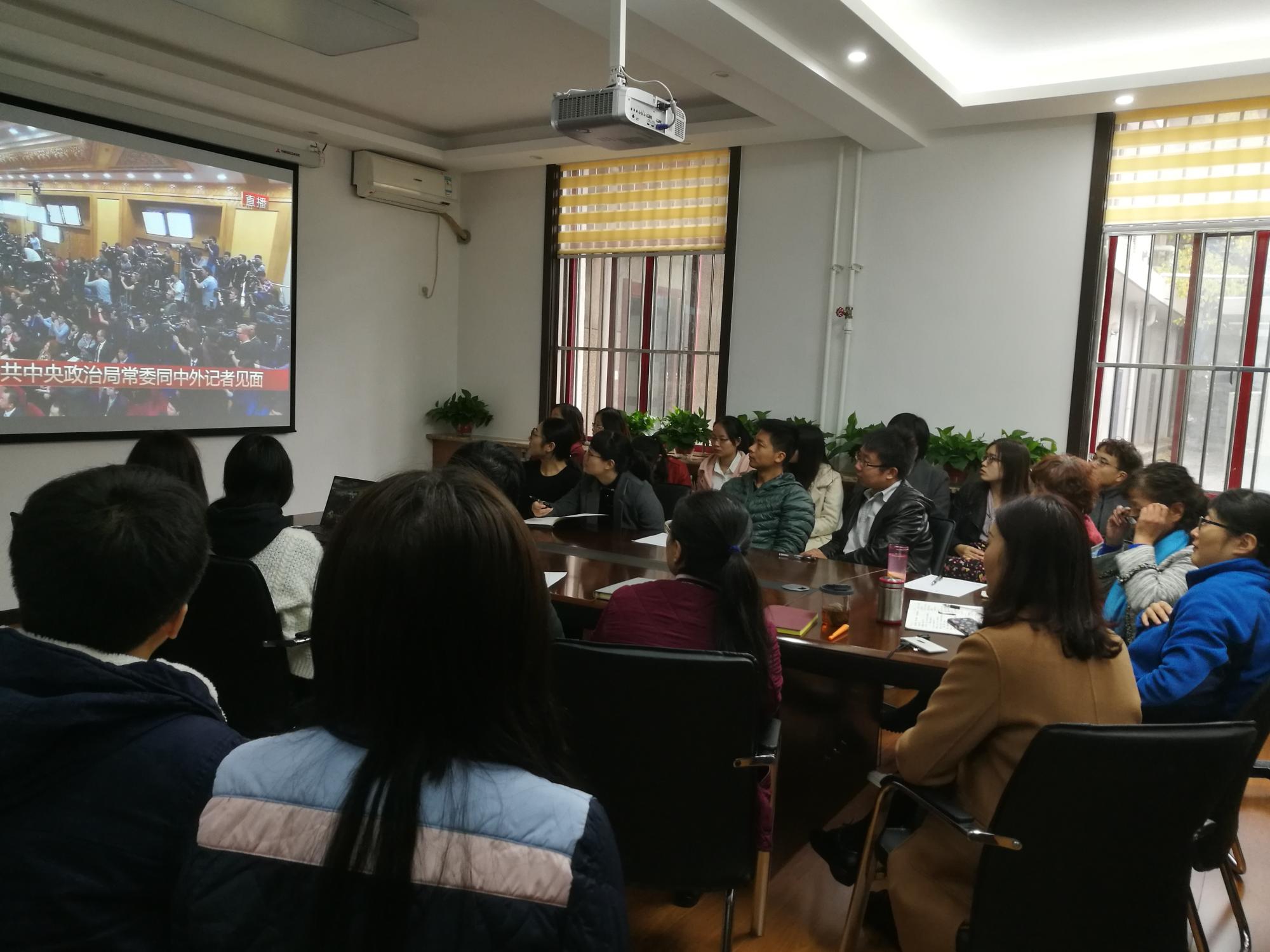 学院师生集体收看十九届中央政治局常委同中外记者见面会