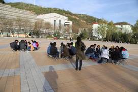 414日下午,学员们在张思德广场附近聆听了杨延虎教授讲述了一位平凡战士——张思德的故事。杨老师向我们描述了默默奉献的张思德在炭窑崩塌时,为救战友,不幸牺牲的感人事迹,并深入解读了毛泽东在张思德追悼会上的演讲——《为人民服务》,讲授了毛泽东对人生观和价值观的理解。在张思德身上,学员们懂得了,一个平凡的人,即使从事着再平凡不过的工作,只要你心存人民,善待人民,全心全意为人民服务,那么在小小的岗位上的你,也配得上“伟大”和“不平凡”的称号。
