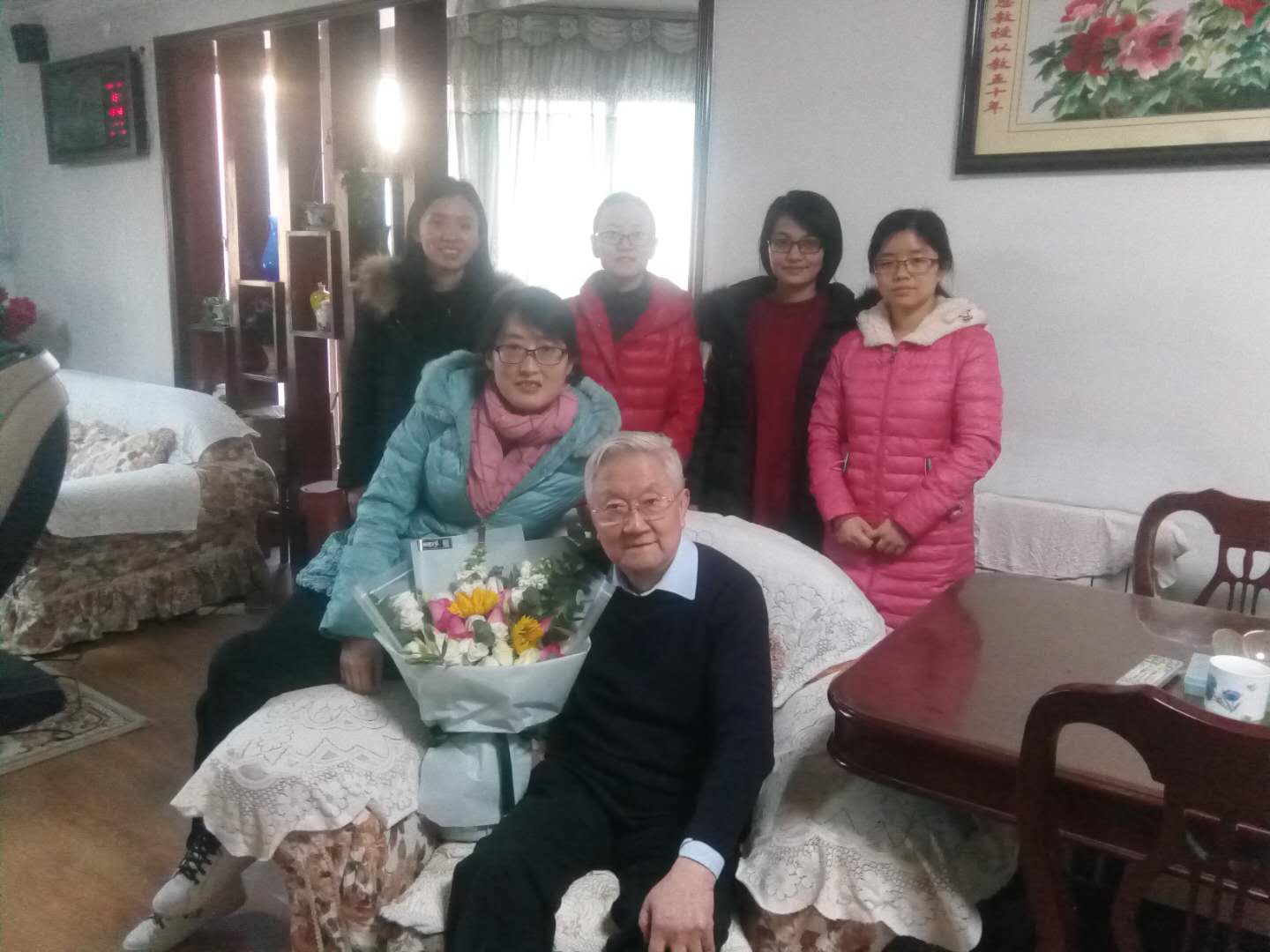 12月19日下午,分党委副书记易媛带领师生党员代表赴西迁教授马知恩和王景容家中拜访。