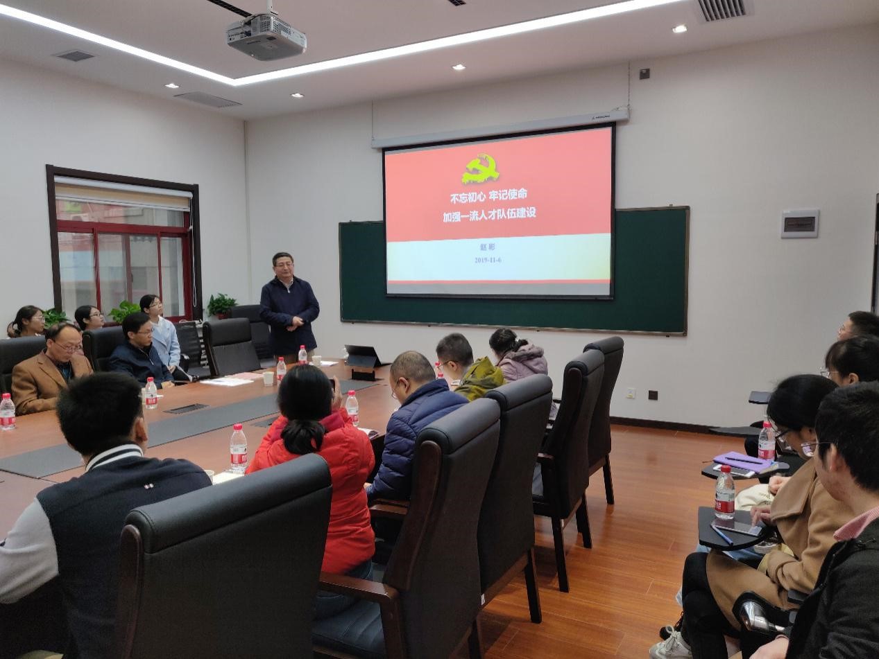 院长赵彬和党委书记颜莉分别以“加强一流人才队伍建设”“不忘教书育人初心牢记立德树人使命”为题讲党课,师生党员代表参加学习。