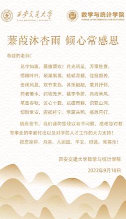 学院硕2021级第一党支部、第二党支部联合学院研会、“三新班”同学们,精心制作了视频“当‘皓月’遇上‘教师’,是团圆遇上感恩——教师节,我想对您说……”,用质朴的语言和真挚的祝福,为所有老师送上了一份特别的节日礼物。