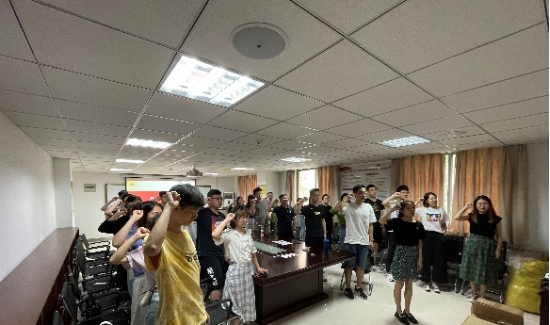 聚是一团火,散是漫天星。最后,支部为每位同学送上了一枚党徽,希望大家不忘入党初心,勇担时代使命,在自己的人生长河中书写好属于自己的人生华章!在支部书记的带领下,全体党员庄严举起右拳,面向党旗重温入党誓词用铮铮誓言彰显永恒初心。2018级党支部最后一次主题党日活动在铿锵有力的誓言中圆满落幕