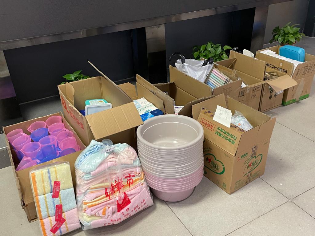 团工委针对惠风苑工作人员生活需求,集中采买毛巾、盥洗盆、牙具等物品,与学生捐赠物资一并于12月29日晚送至惠风苑一楼。