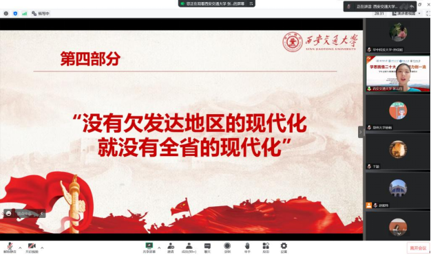 随后,西安交大学生微宣讲团(筑梦社)副团长张云月从“现代化=西方化?”出发,结合习近平总书记的工作经历,以《从习近平总书记的工作历程看中国式现代化之路》为题进行微宣讲,深入浅出地引导大家感悟“中国式现代化”,中国式现代化新道路,是“走自己的路”的必然结果,具有鲜明的创新性、自主性和优越性。