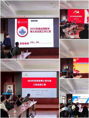 数学博士党支部、计算数学博士党支部、应用数学博士党支部、信息博士党支部和统计师生联合党支部围绕2022年党建工作开展情况进行了汇报,并对今年支部工作进行规划。应用数学博士党支部书记刘辰深入挖掘支部先进党员事迹,充分展示了支部党员先锋模范作用。统计师生联合党支部副书记谭承利建议加强博士党支部同其他学院的联系与沟通,开展丰富多样的支部活动,进一步提高支部成员参与的积极性。