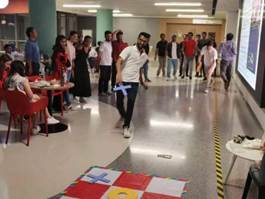 之后的团队竞技游戏中,中外学生组成不同的队伍,相互交流,共同合作,在游戏的过程中感受文化的交流与碰撞。