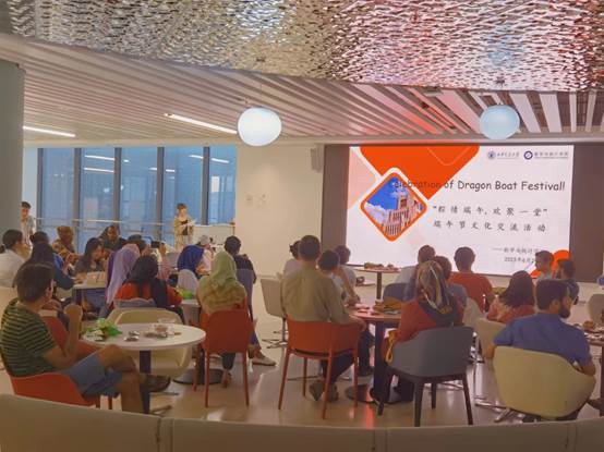 于6月21日在创新港青年之家举办“粽情端午 欢聚一堂”端午节文化交流活动。活动邀请了70余名留学生与中国学生一起缝香包、做游戏、品粽子,在轻松愉悦的节日氛围中亲近传统文化,促进中外文化交流共融,增进中外友谊,感受浓浓端午情。