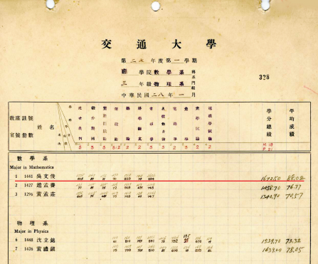 吴文俊大三第一学期成绩单